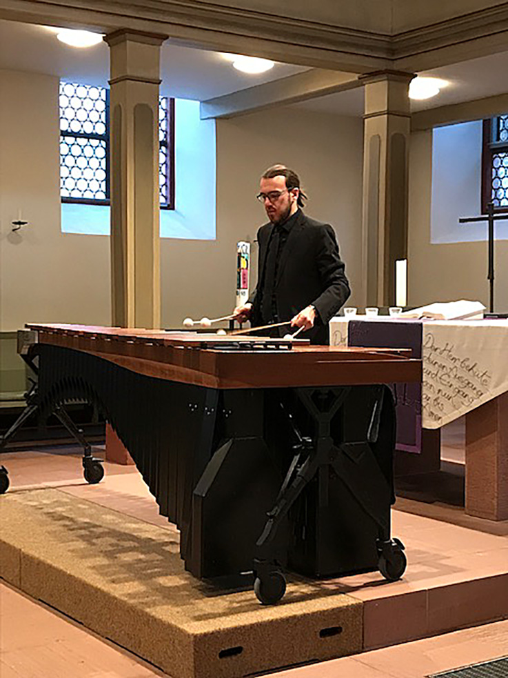 akrobatisch ausgeführten Spiels mit vier Schlegeln war