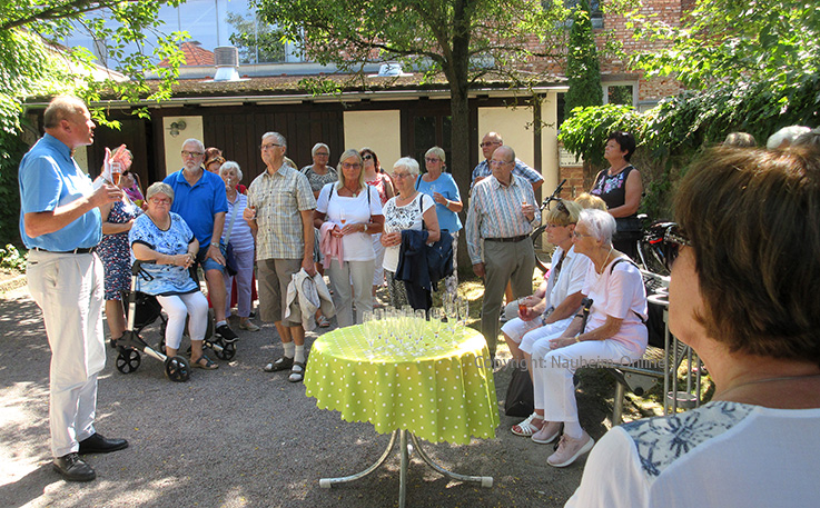 die Ausflügler im Garten mit einem Josecco begrüßt.