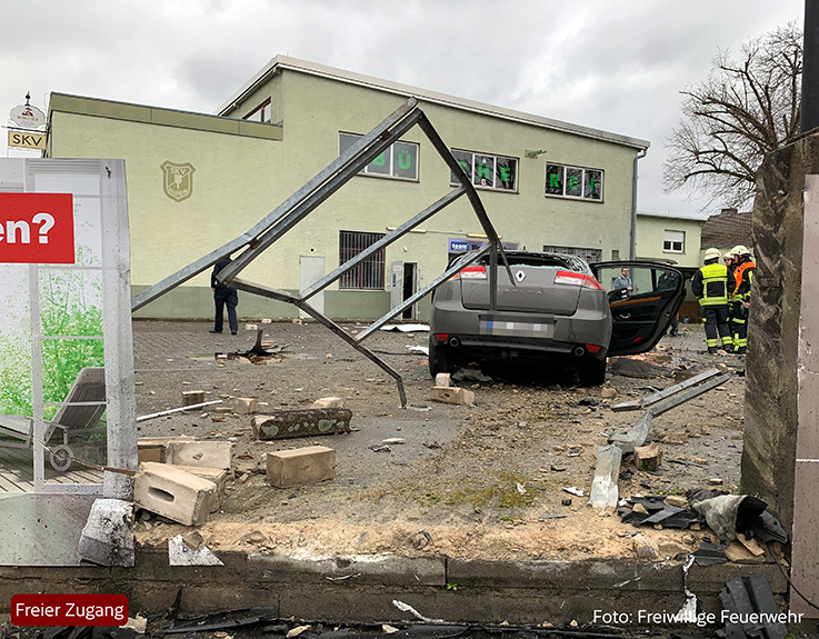 entstand erheblicher Sachschaden an Mauer und Gebäude.