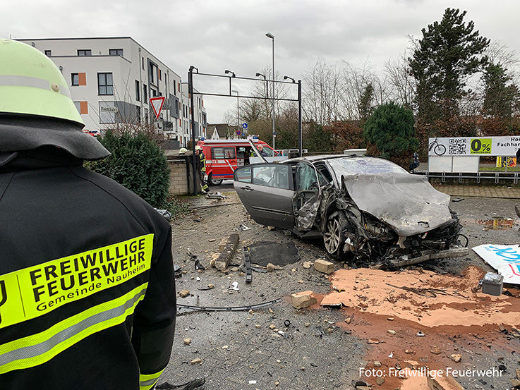 spektakulärer Unfall passiert. Die Feuerwehr, die um