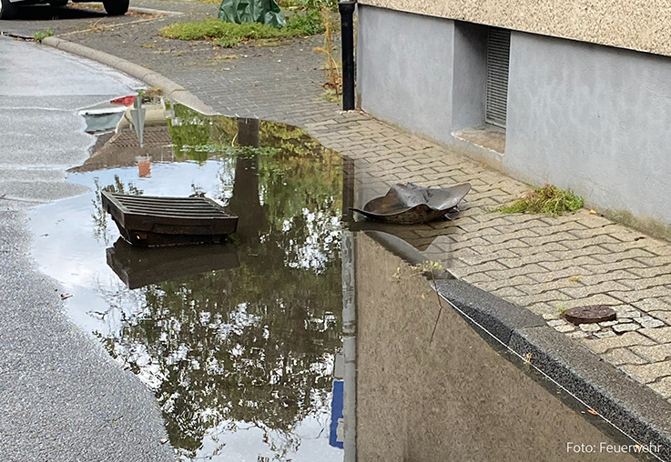 Wehr fischt Kanaldeckel aus Schwarzbach - Wasserschaden
