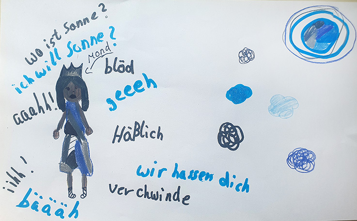Von Sophia Ahmed. Eines Tages wurden sie von der Trauer überflutet, so dass kein Stück Liebe zu ihren Schwestern da war und sie verließen sich. 15 Jahre lang gab es keinen Augenkontakt mehr zu ihnen und sie vergaßen einander. Die Sonne war 15 Jahre lang durch und durch da, bis die Menschen nicht mehr konnten. Sie sahen sein, dass sie den Mond brauchten.