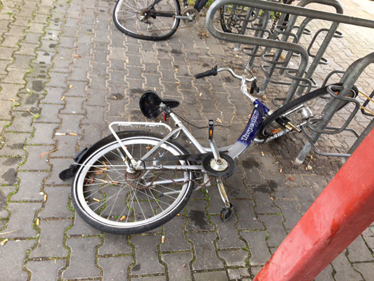Gesehen am Bahnhof Schlechtes Fahrradklima: platte Reifen, verbogene Speichen, demolierte Rahmen So ergeht es (manchen) Fahrrädern am Bahnhof.
