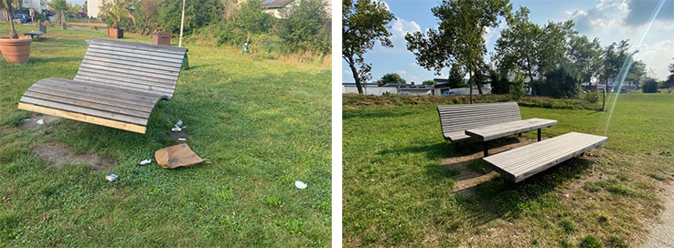 Zerstörungen und Müll Der Bürgerpark wird von Hirnlosen mit Füßen getreten - Boule-Spieler verstimmt Mutwillig aus dem Boden gerissen.