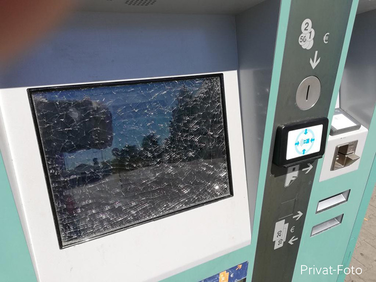 Bedingt einsatzbereit Fahrkartenautomat am Bahnhof: Display nach Zerstörung kaum einsatzbereit
