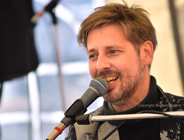 Unterhaltung auf dem Campingplatz Froh für jeden Auftritt: Kabarettist Daniel Helfrich macht Späße im Biergartenzelt Daniel Helfrich bei seinem Auftritt auf dem Campingplatz.