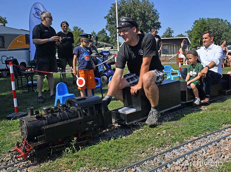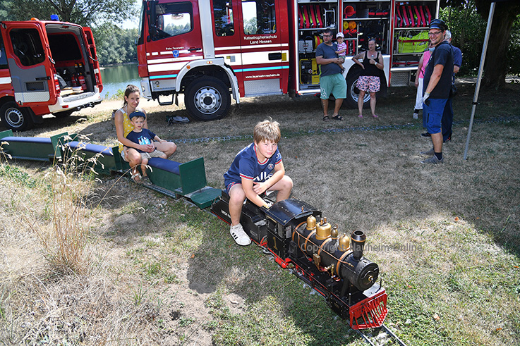 Die ersten Runden mit de Bahn. Später am Nachmittag kamen zig Familien mit Kindern zur Hegbachseebahn und Jugendwehr.