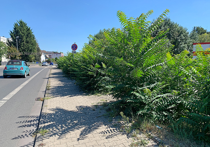 Mängel und der Umgang damit Auf den wild wuchernden Götterbaum achtet keiner - Was unternimmt die Gemeinde?