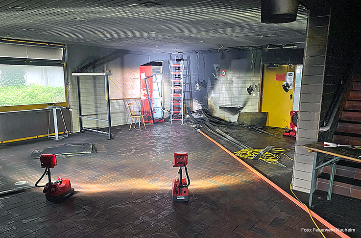 Defekt an Maschine Vorerst kein Sport in der Georg-Schad-Halle: Nach Brand gesperrt So sah nach dem Brand das Foyer aus.