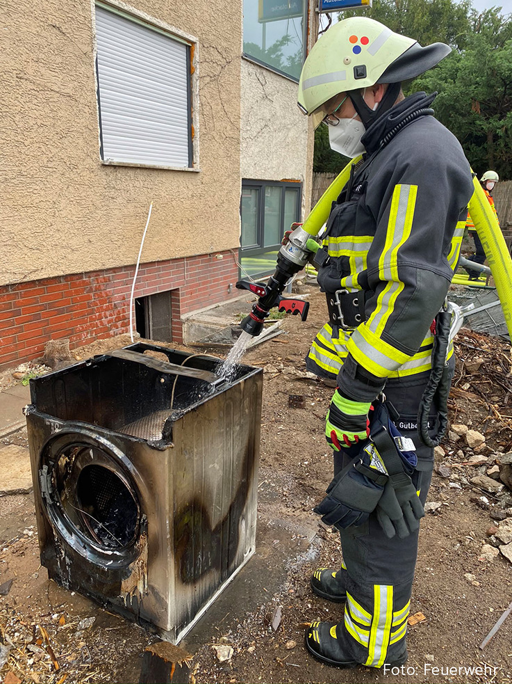 Weil eine Waschmaschine brennt, muss die Feuerwehr schon