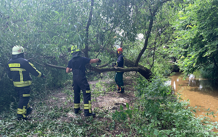 Wehr fischt Kanaldeckel aus Schwarzbach - Wasserschaden