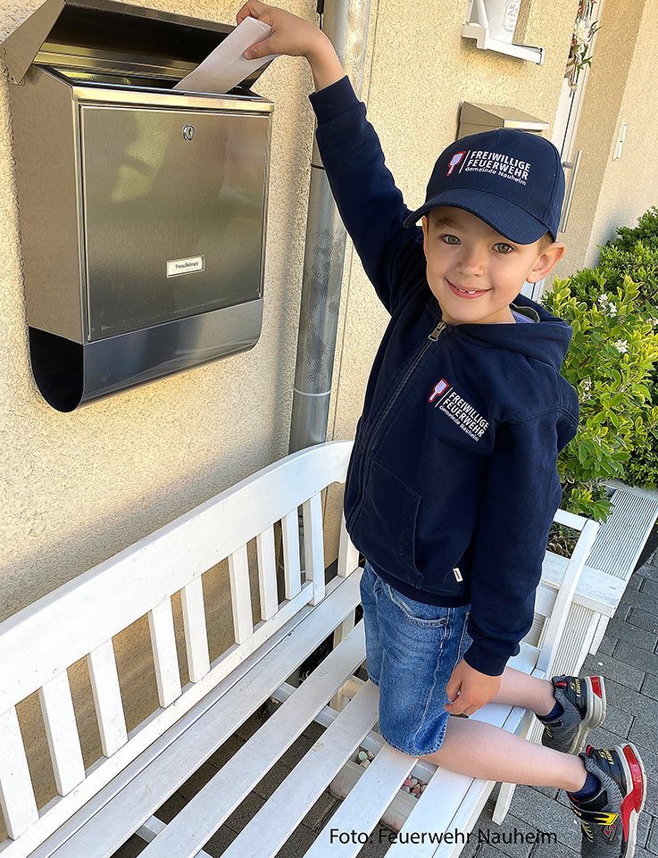 Generationenhilfe mal anders Jugendfeuerwehr, Betreuer und Mitglieder der Einsatzabteilung verteilen Masken Maximilian Hartmann hilft beim Verteilen.