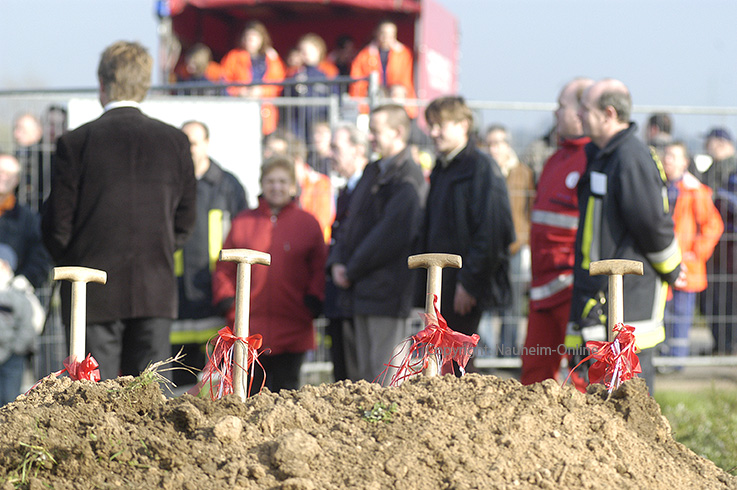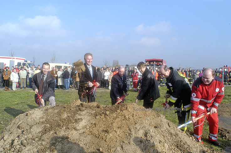 Nach langwierigen Debatten Spatenstich vor 15 Jahren: Neubau des Feuerwehr- und DRK-Gebäudes Für den ersten Spatenstich war alles gut vorbereitet.