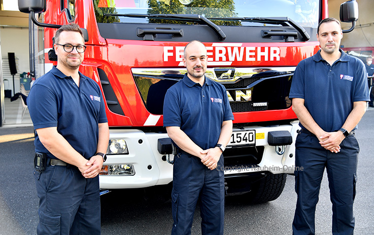 Doppel-Bilanz der Wehr 390 Einsätze, gut ausgebildete Kräfte und noch mehr Rückhalt in der Verwaltung Marco Fresu (Mitte) ist zum Hauptbrandmeister befördert worden. Die Wehrführung mit Christian Hartmann (l.) und seinem Stellvertreter Daniel Becker (r.) können sich auf gut ausgebildete Kräfte verlassen.