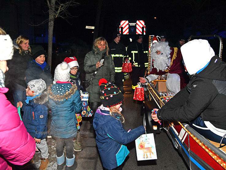 Nikolausaktion Nikolaus in einem Boot mit der Feuerwehr - Hunderte Menschen auf den Straßen