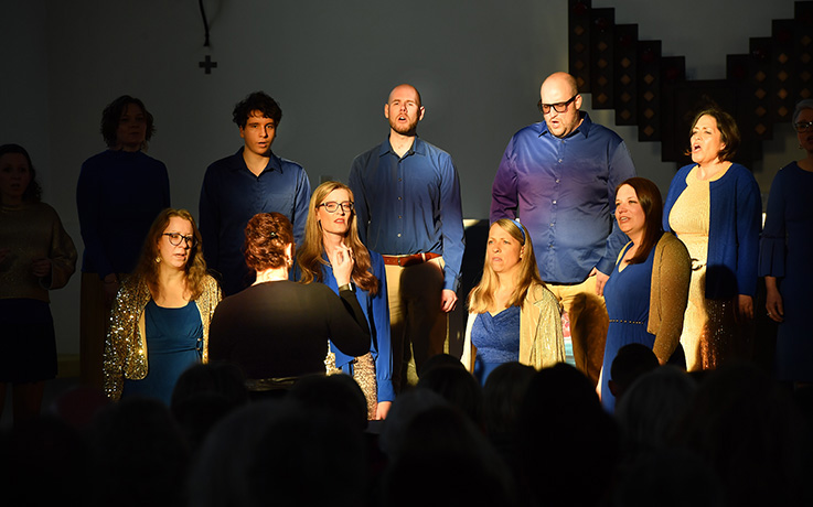 einem Auftritt in der katholischen Kirche, lädt zum Mitsingen ein.