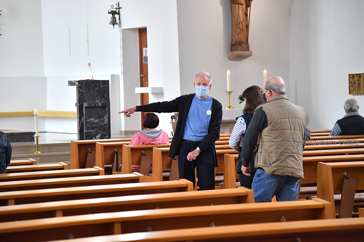 St. Jakobus atmet auf Mit großer Fürsorge und Sorgfalt der erste Gottesdienst seit Wochen Reiner Gulla zeigt auf freie Plätze.