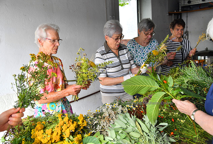 Rückblick und Ehrung Erinnerungen an schöne Zeiten, von 2020 zurück bis Pfarrer Heinrich Staudt An gesellige Aktionen wie das Binden der Würzwische erinnern sich die Mitglieder der Frauengemeinschaft gerne.
