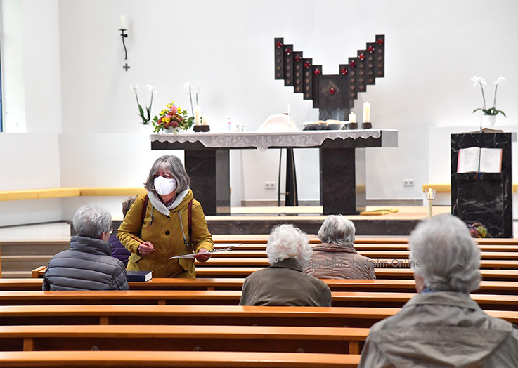 Bilanz im Gotteshaus In der Frauengemeinschaft gehören die meisten der Corona-Risikogruppe an Wer ist anwesend? Die Vorsitzende notiert die Namen wegen Corona.