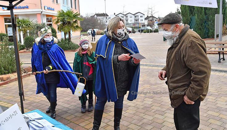 Aktion auf dem Marktplatz Die Menschen sehnen sich nach Nähe, und die Sternsinger bieten ihren Segen Einen Segen zum Mitnehmen überreicht hier Regina Sever.
