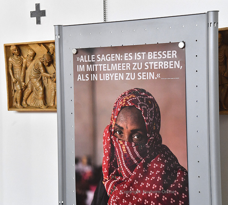 Plakate und Texte Ausstellung bei St. Jakobus: Wenn Asyl nur noch auf dem Papier steht Eindringliches Plakat in der Ausstellung.