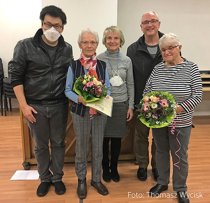 Ehrungen im Chor Erika Sattler und Gudrun Sokoli verkünden den Glauben seit vielen Jahrzehnten gesanglich Mit Blumen bedacht wurden Gudrun Sokoli und Erika Sattler.