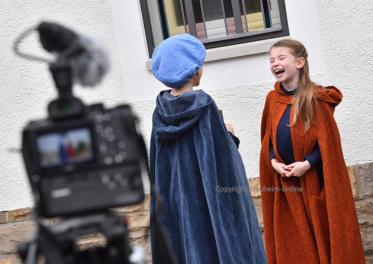 Krippenspiel als Video Kinder spielen die Szenen von Maria und Josef mit großer Freude Wie sympathisch: Plötzlich muss Ylenia alias Maria herzlich lachen. Die Szene für das Video vom Krippenspiel wird anschließend wiederholt.