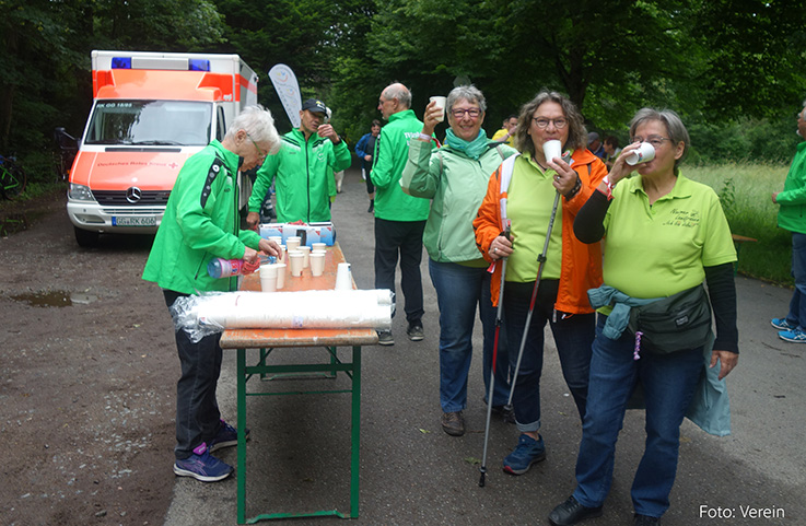 Kurze Rast der Laufgruppe beim Lauf gegen Depressionen.