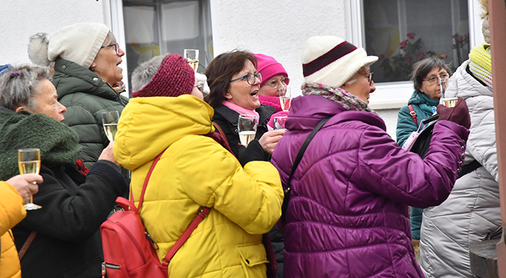 Sekt und Gesang gehören vor der Neujahrswanderung dazu, gute Laune erst recht - so wie auf dem Foto von 2024 zu sehen. © Archivfoto Nauheim-Online