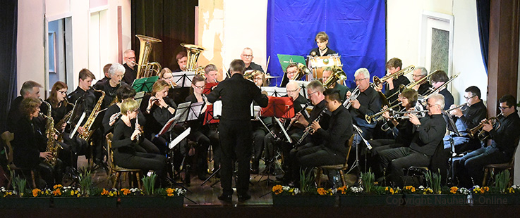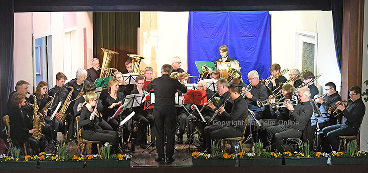 Doppelte Bilanz Vorstand wiedergewählt - Erinnerung an einfachere Zeiten - Musiker gesucht Foto aus einfacheren Tagen: 2019 konnte der Musikverein noch in größerer Besetzung im Saalbau auftreten.