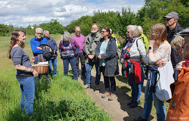 Kräuterwanderung: Mirjam Reus erklärt die Nützlöichkeit der Gewächse.