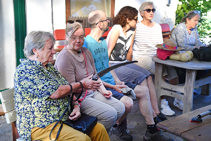 Anfassen erlaubt: Ilse Hack und Kerstin Deimer (v.l.) interessieren sich für eine handliche Baumsäge.