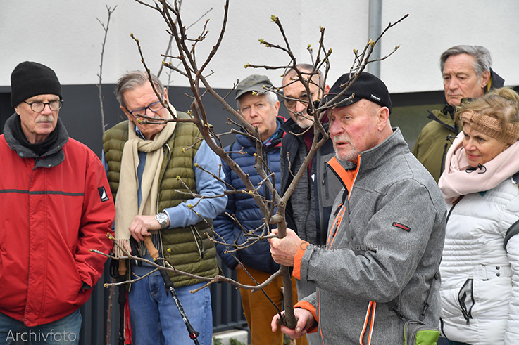 Neuer Veranstaltungsort: Anfang März 2024 zeigte OHV-Vorsitzender Herbert Vogel am Sportkindergarten, wie Obstbäume geschnitten werden sollten.