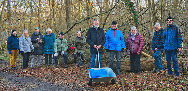 Fleißige OGV-Mitglieder: Unterwegs wurde Müll gesammelt (und fürs Foto pausiert). © Foto Verein