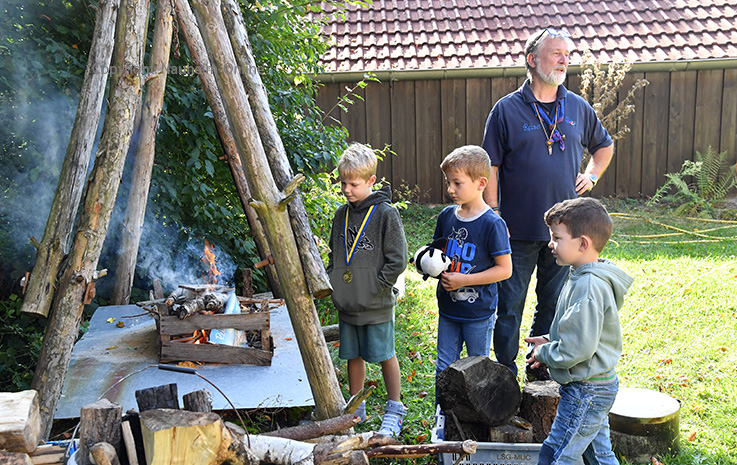 Die ersten drei Jungs sorgten für das Feuer; Reiner Weber (r.) vertraute den Buben sofort.