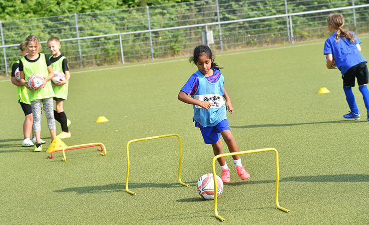 Koordinationsübung bei der Fußballwoche. © Foto Nauheim-Online